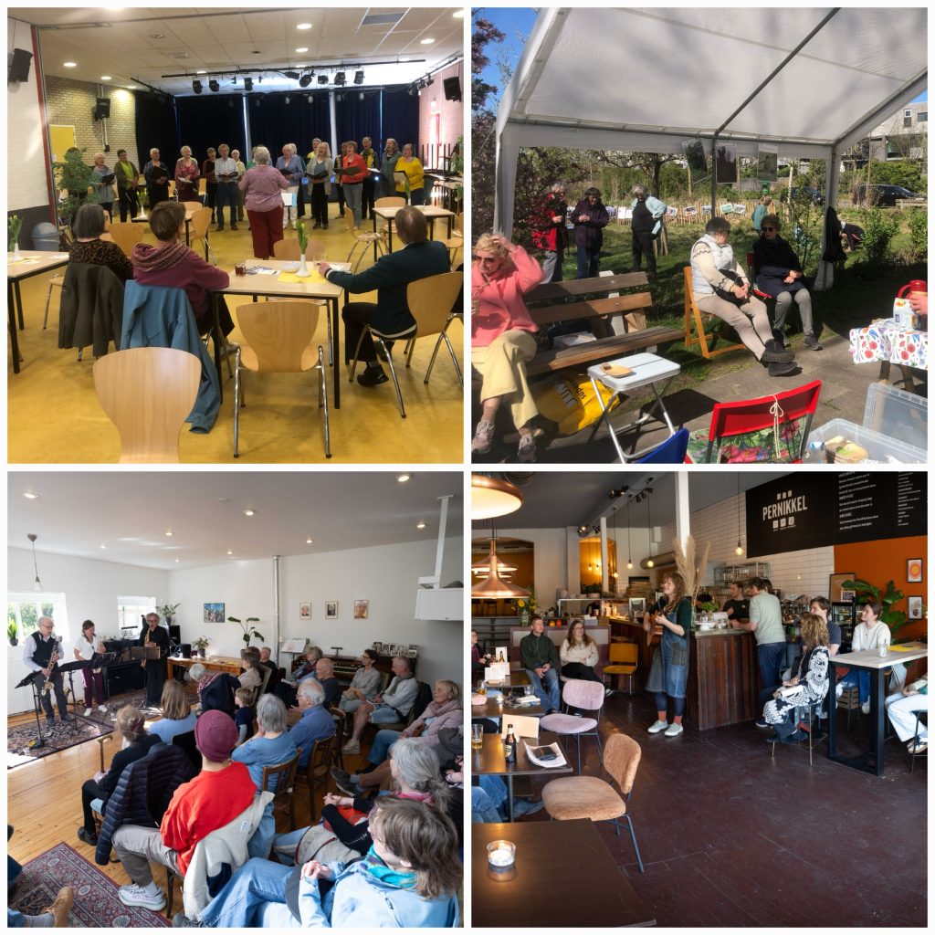Na afloop, inmiddels een traditie, sloten we af in de Slingerij met uiteraard muziek van Harry Kasemir en zijn band. En natuurlijk…..het buurtlied dat zo langzamerhand door velen meegezongen kan worden.