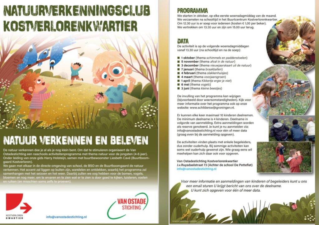 - NATUURVERKENNINGSCLUB KOSTVERLORENKWARTIERIn oktober starten we met een natuurverkenningsclubje voor kinderen van 4-6 jaar. Elke 1e woensdagmiddag… Lees meer: NATUURVERKENNINGSCLUB KOSTVERLORENKWARTIER
