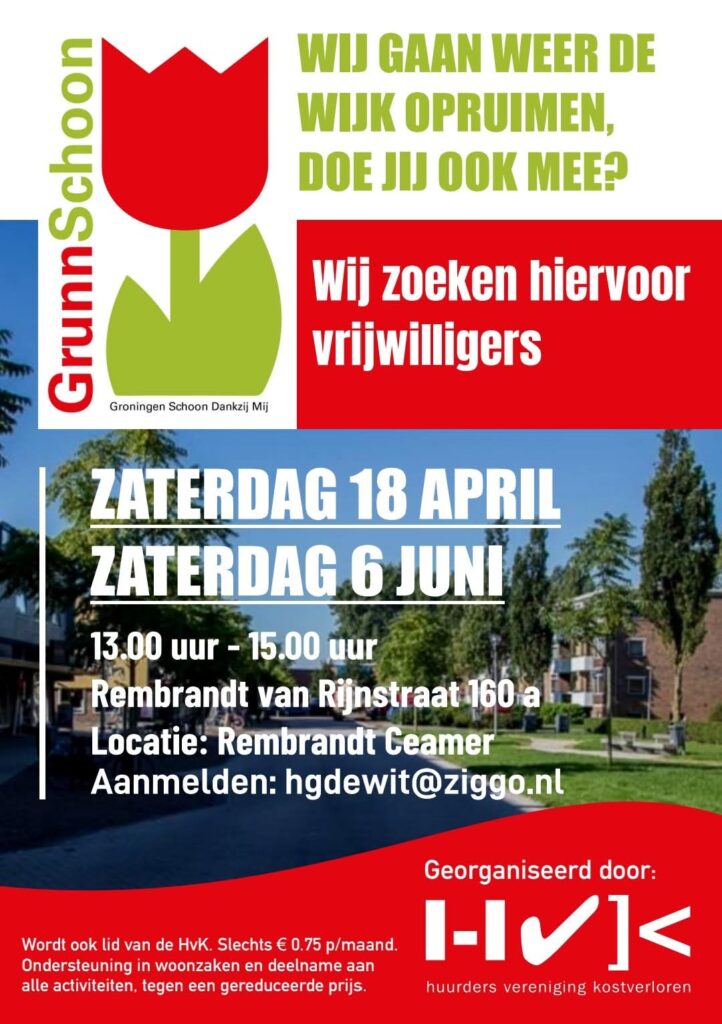 GrunnSchoon wordt in onze wijk georganiseerd door de Huurdersvereniging Kostverloren.